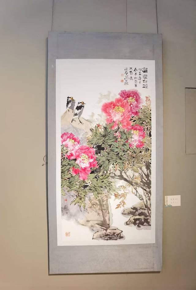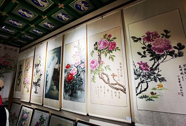 2、主题展。《美丽菏泽 富贵花开——菏泽市中国画牡丹主题展》,征集了菏泽籍擅长国画牡丹的优秀画家作品66幅,展现了画家们对家乡牡丹的理解和追求,艺术视角丰富多样、画面语言观感强烈,技法笔墨精湛创新、个性风格鲜明迥异,无论写意还是工笔,这些画作把菏泽牡丹淋漓尽致地表现了出来,欣赏过牡丹园中雍容华贵的国色天香后,再来博物馆观赏画作上鲜艳欲滴的姚黄魏品,同样是牡丹,带来的视觉享受是不同的。