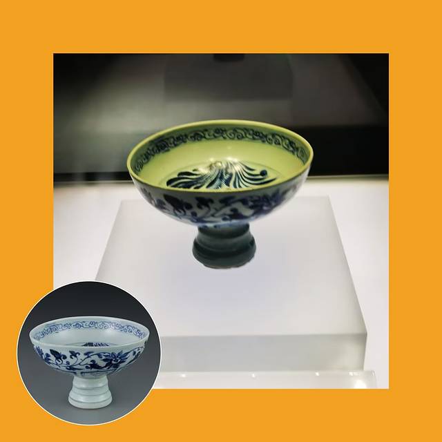 2、青花鱼藻纹高足碗‖元代。敞口、曲腹、尖圆唇、竹节形高足,足墙外撇、足内中空,白胎细腻、胎体较薄,白釉泛青、足端刮釉、足内满釉。