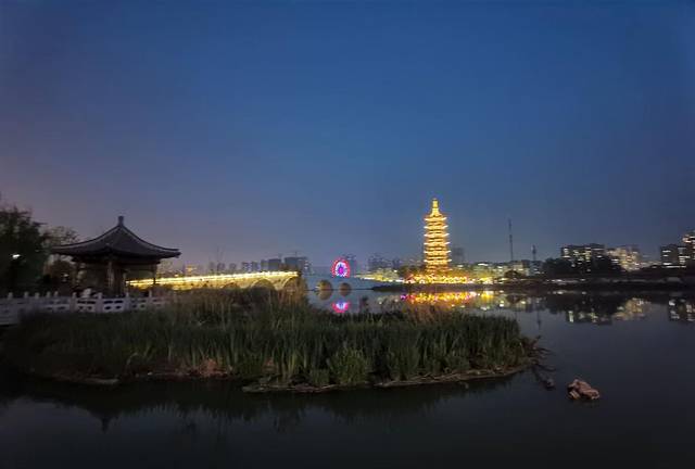 菏泽的老城曹州有一条青年湖,青年湖原来是古时候留下来的“72个坑塘”中的一个,由于长期在这里取土筑城,久而久之这个坑塘越来越大。经过总体规划设计,将原来的一个坑塘变成了一湖活水,成为老城曹州“黄河→护城河→青年湖→南关排水站→黄河”水循环系统中的一个节点。现在我们看到的青年湖已然是一个公园的模样,有岛有塔、有亭有阁,曲径回廊、湖光潋滟。