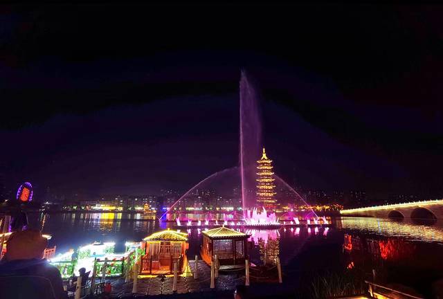 青年湖最出彩的时候是晚上,水幕音乐灯光秀在青年湖上拉开帷幕。此时!随着或舒缓或激扬的背景音乐,湖面上的喷泉喷出了各色各样的造型和场景,灯光射出了千变万化的色彩和旋律,此刻!灯光、湖水、沿岸景观融为一体、交相辉映,将青年湖点缀得流光溢彩、格外绚烂。