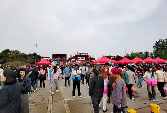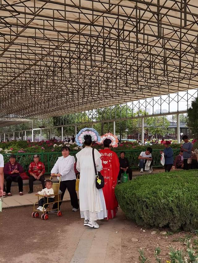 我们很幸运!有当地眼线实时预告牡丹节动态,可以及时掌握最新状况、调整安排出行计划。我们4月15日到达菏泽时,牡丹正好进入盛花期,这个时间节点掐得嘎嘎棒!我们是有点得意滴。因为,开幕日后的几天时间和双休日一般都是超大流量,我们完美地避开了高峰时段,尽管我们去的时候依然人山人海,但据当地人说已经不是峰顶;我们是4月18日离开了菏泽,隔天就听到消息,由于气温持续升高,只有零零星星的牡丹还硬撑着笑脸,大部分牡丹都蔫了!劝退了不少跃跃欲去的人。