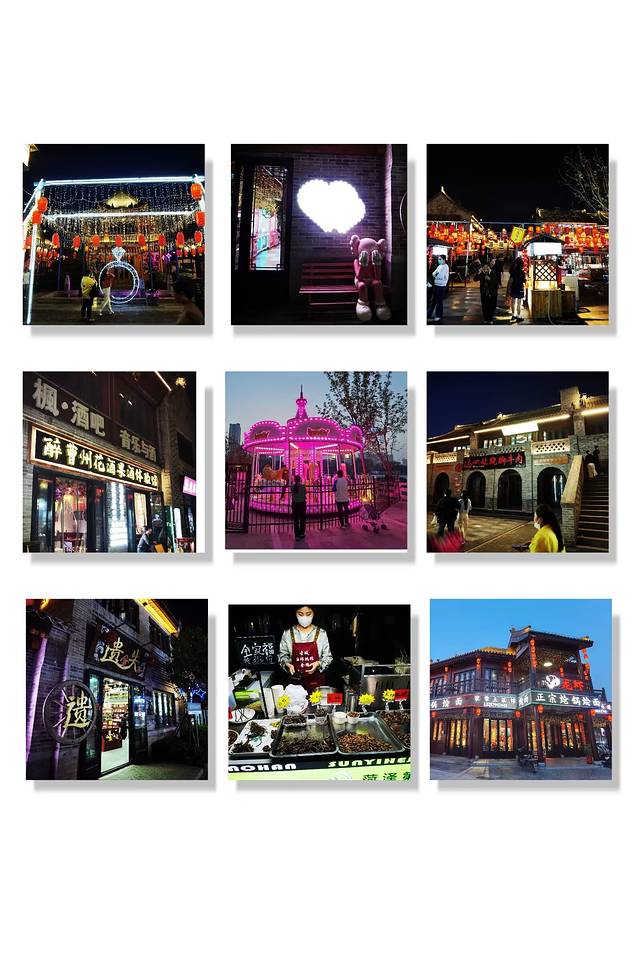 夜幕下的老城曹州,车水马龙、人声鼎沸,灯火璀璨、辉煌夺目,道路两旁停满了车辆,除了我们这些外乡人去这里打卡外,更多的是当地人在这里消费游玩,尤其是1466街,是老城曹州最热闹的地方,这里有各种风味小吃和特色餐饮、潮流服饰和工艺制品、娱乐设施和儿童乐园,还有非遗项目展示,吃住购娱、业态齐全,当地土著告诉我们,这里是他们闲暇之余喜欢溜达的地方,也是旅游消费的一个集聚区域。