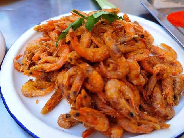这两家店吃下来,古城大排档的杂鱼锅和马征大串青山羊的油爆河虾值得安利,还有马征大串青山羊有一道菜(图五),名字没记住,好像叫蒜蓉蛋白,我喜欢吃!串串的味道这两家店大同小异,区别不大,夜宵撸串的氛围这两家店都是绝绝子,就是吃不动了,瞅着左邻右舍大口吃肉、大腕喝酒,心情的愉悦那是不言而喻的。