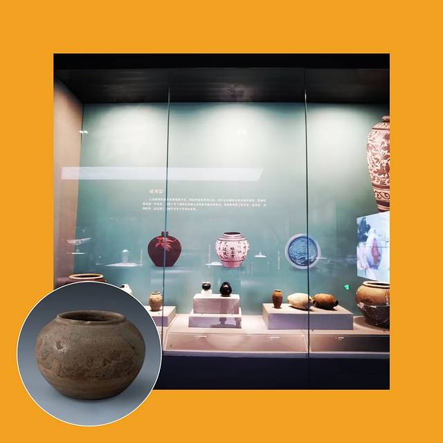 8、隋瓷罐‖隋代。敛口、鼓腹、小平底,上部施青釉、下腹底露胎,露胎处有旋纹、釉略呈青灰色。
