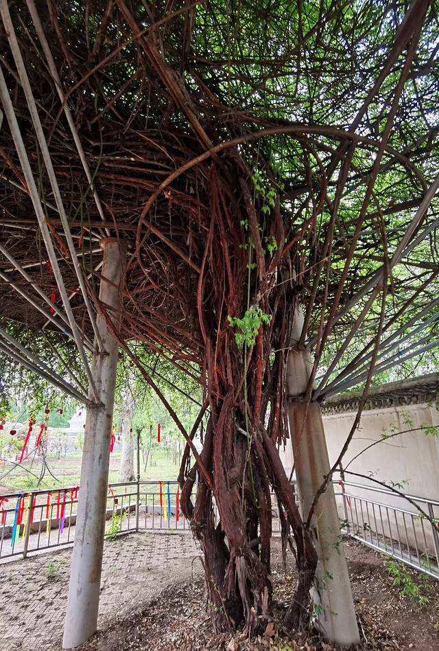 禅香寺是在扈通院遗址上重建的寺院,一切都是簇新簇新的,当年赵州禅师在此修行的痕迹都荡然无存了,扈通院的影子也消失殆尽。唯一有历史的,是寺院东墙边上的一株木香树,这株木香树遮天蔽日、盘根错节,枝繁叶茂、花香四溢,树龄约160年,这株木香树曾被评为菏泽魅力景点。到禅香寺此树没看,等于没去。