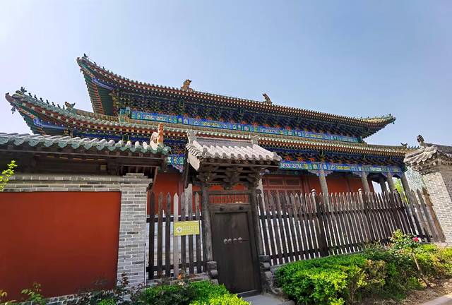 其中,天王殿供奉着弥勒佛、四大天王和韦驮菩萨,大雄宝殿正面供奉着释迦牟尼佛、药师佛和南无阿弥陀佛,背面供奉着观音菩萨。万姓先祖纪念堂供奉着人类始祖、上古三皇五帝以及万姓先祖往生灵位,目前整个中国所有的姓氏都在这个纪念堂有一个集中的展示。我们去的时候,藏经阁关闭着,无法入内。