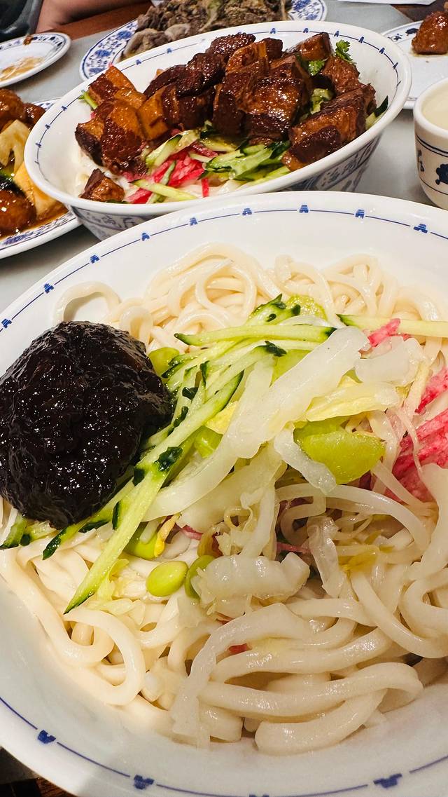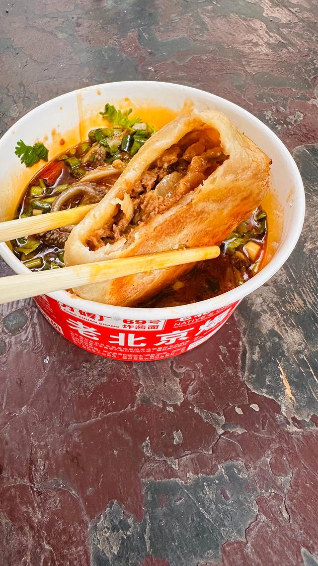豆汁儿没拍,我老婆一口气干了,海碗居的炸酱面,一碗红烧肉的,一碗经典的,吃完了就回家了。