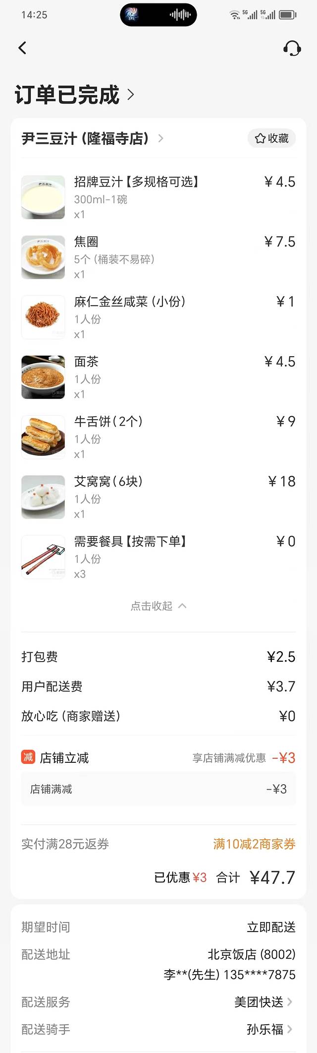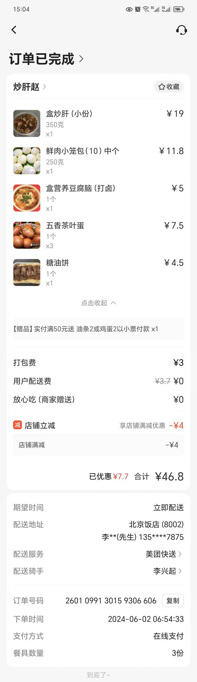 因为要避开假期,不要太多人,所以晚上到的北京,为的是不妨碍明天的行程,入住以后赶紧睡觉。第二天一早我们的早餐开始了,也是为了节约时间,我们早餐基本上都是点的外卖,吃点老北京地道早餐美食吧,只是刚从大东北回来,这个物价差距啊!