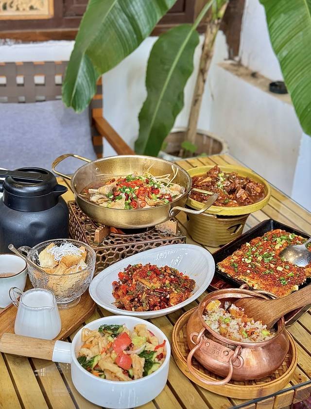 位于丽江束河古镇的这家美食餐厅,真的太俘获我的心,点的招牌小锅饭,椰香泡鲁达,傣味舂鸡爪,情人梅烧排骨,秘制雪山鱼·椒香鱼片等每一道菜太好吃了,真的没有踩雷的,还有音乐驻唱,超级好听,服务员服务态度超级好,爱了爱了!值得推荐!