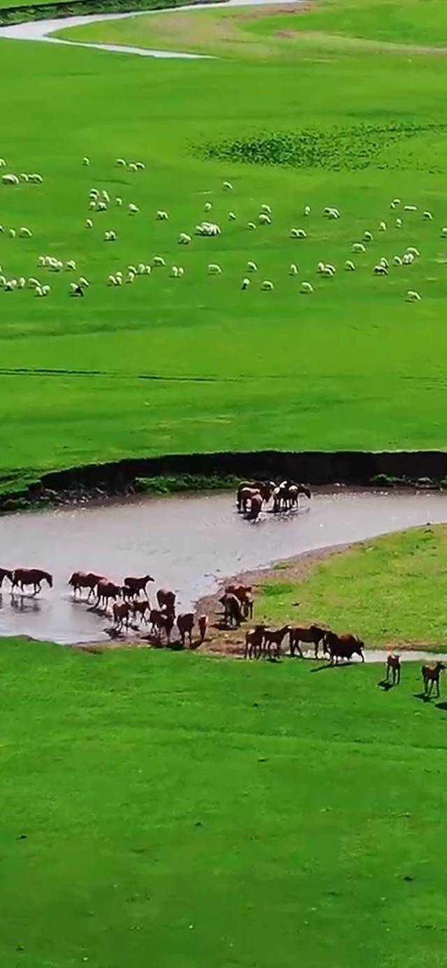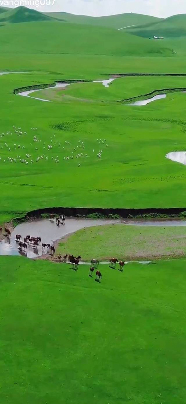 沿着公路前行,满眼的蓝天白云和广袤草原,仿佛进入了一个童话世界。我们到达莫日格勒河,那蜿蜒的河流在草原上流淌,实在是太美了。
