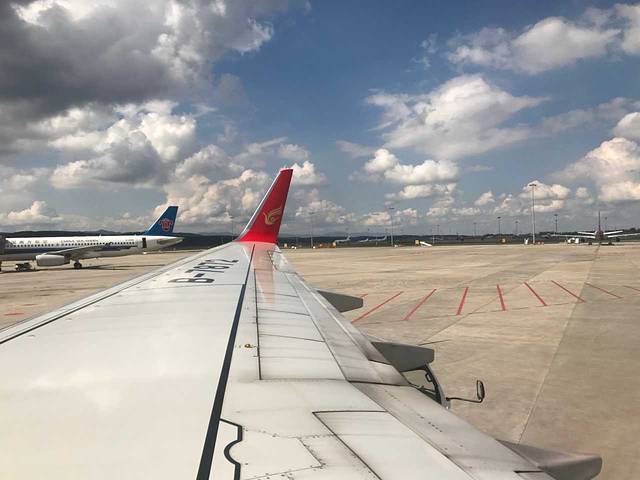 这是在坐上机场大巴之后拍的,当时六点左右,天气不算很好。