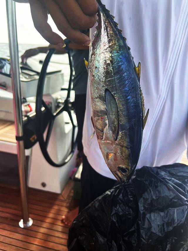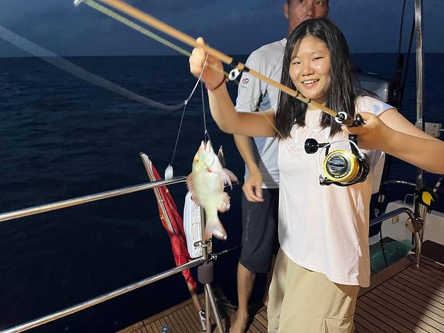 返航途中,经过深海一号井架平台,该海域水深超过1000米,是鱼群较集中的区域,种类以金枪鱼为主,船上有渔具,无论你有没有钓鱼经验,都可以尝试一下,说不定上帝眷顾你,让你成为全船的钓神,如果你运气爆棚,可能会钓到金枪鱼喔,亲手钓到的海鲜,秒变刺身的美味你一定不要错过。