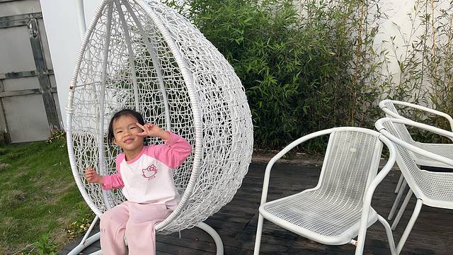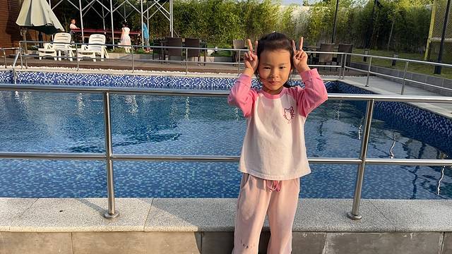 院子里淇特喜欢玩这个蹦跳,看到她欢快的笑声,玩得很开心,还要跟我玩老鹰抓小鸡,追着她院子里围着游泳池🏊跑🏃。