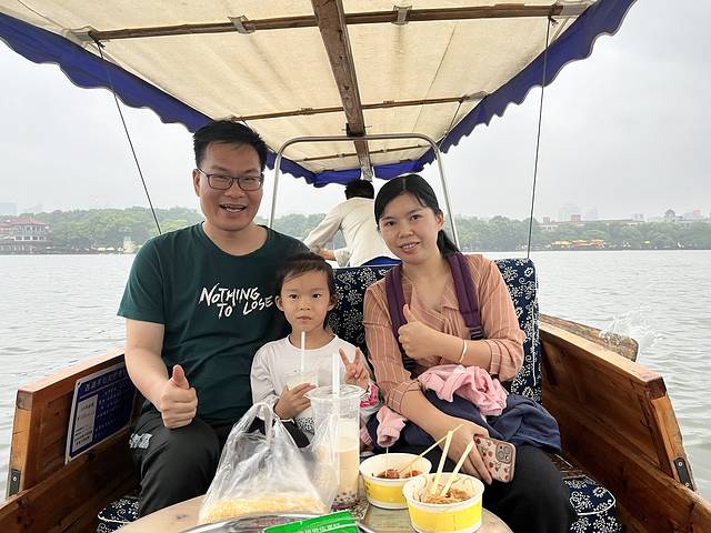 女儿闹要坐船,我是下了血本义无反顾的答应了她的要求,我还趁她们还在吃小吃的时候,提前往前去打听坐船的价格,听说要收船了,我很是失落。老天还是特别的眷顾我们,最后还是赶上了最后一趟划船🚣。