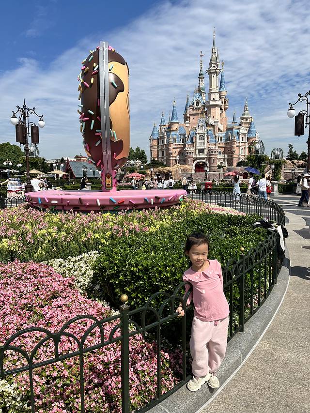 第二天很早,七点多就坐民宿酒店的车到迪士尼,十几分钟的车程。来这里玩的人确实是像网上和别人所说的很多很挤,进门就是排队。还好不是假期旺季,虽然人多,做啥都要排队,但还可以接受。这天天气也很好,不是很热。