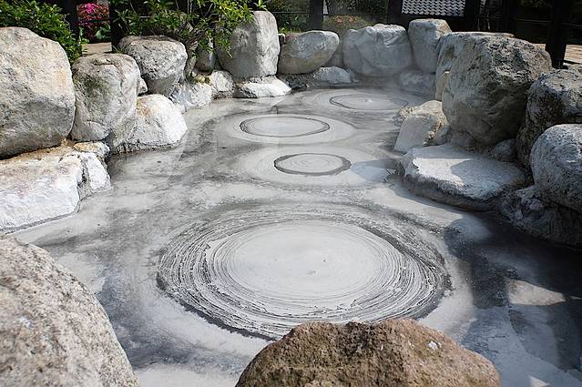 别府温泉组合一共有7个完全不同的温泉池,分别是「海地獄」「鬼石坊主地獄」「かまど地獄」「鬼山地獄」「白池地獄」和「血の池地獄」「龍巻地獄」,前5个在一个区域,后2个在另一个区域,两个区域之间有一定距离,所以建议搭公交车(鉄輪~血の池地獄前190日元)或者出租车前往。