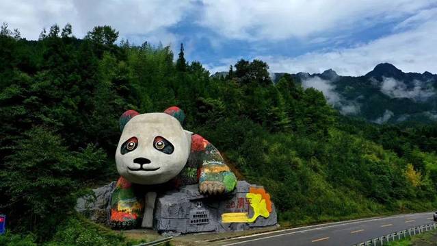驶入金色清平的公路上,可以看到一座栩栩如生的大熊猫雕塑,不同于普通的黑白大熊猫,它用五彩斑斓的装束欢迎着每一位游客,这一身鲜活的色彩也代表了金色清平的青春活力。