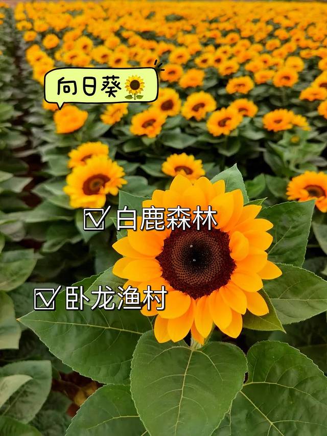 贴士:向日葵花海是在白鹿森林农场内部,里面除了向日葵还可以近距离接触萌宠,户外游乐区、室内游乐区、水上乐园、听风台、自由露营区域、烧烤露营区、九叠泉瀑布、网红吊桥……