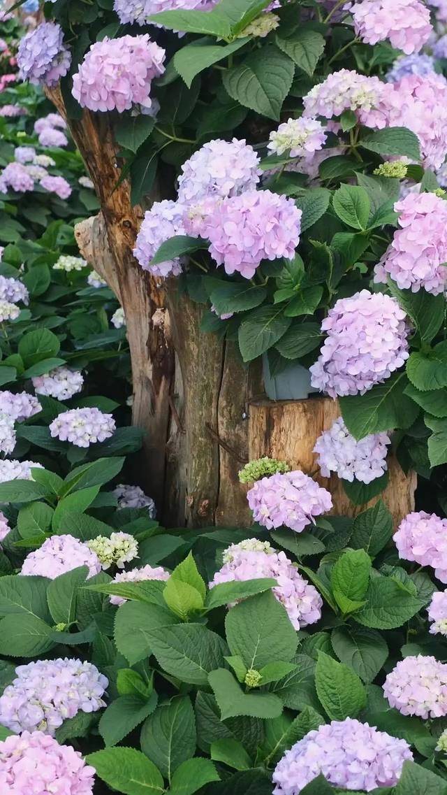 “高枝带雨压雕栏,一蒂千花白玉团”,绣球花又叫八仙花,花朵硕大、颜色丰富,是典型的夏季花卉。因其花期可以延续整个夏天而得名“无尽夏”。所谓“无尽夏”,也可以看作绣球花对夏天的一语承诺——“君若无尽,必以花开无尽相随”。昆明这几个地方的绣球花,也陆续迎来了一年中的高光时刻。