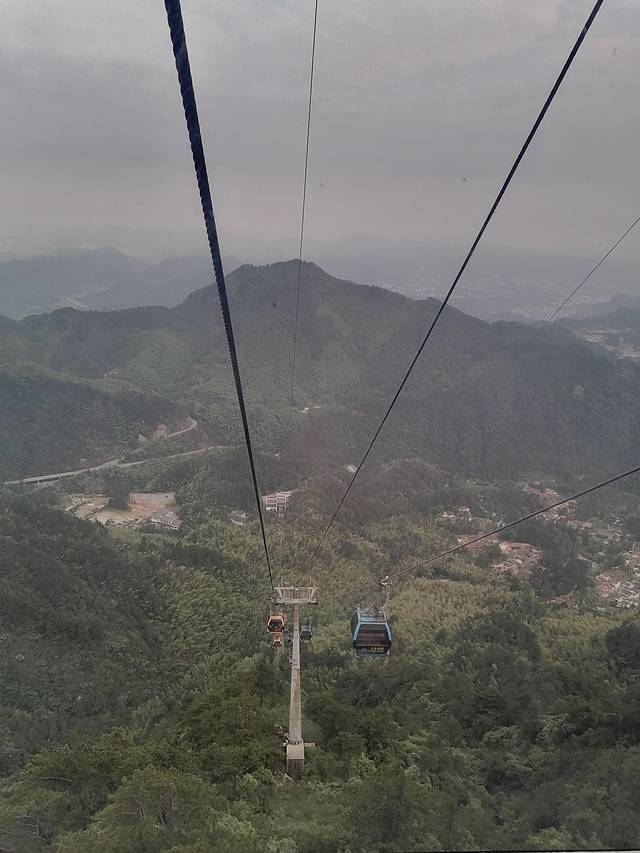 这个缆车好像也挺有名堂,缆车下起丛林寺庙祗园寺,上至供奉明代无瑕和尚真身的千年古寺百岁宫,全套设备从奥地利吉拉克·格拉文达公司引进,为国内第一条具有世界一流水准的缆车系统。