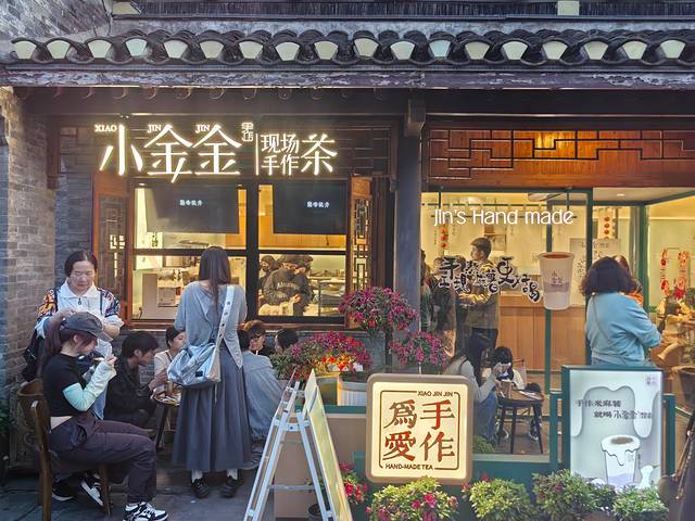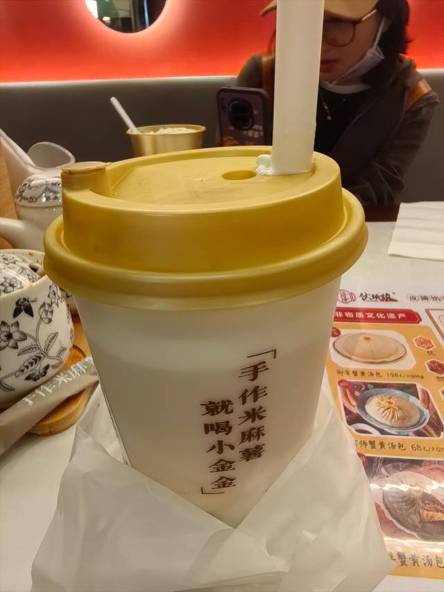 我们先后吃了蟹黄汤包、蟹黄面、肴肉、河豚、虾、锅盖面等等,感觉都还不错。走哪儿吃哪儿没有专门挑网红店,包括网上很多人说的,西津渡的永安鱼庄,好像当地人并不推荐。不过奶茶找了当地一家网红店:小金金。