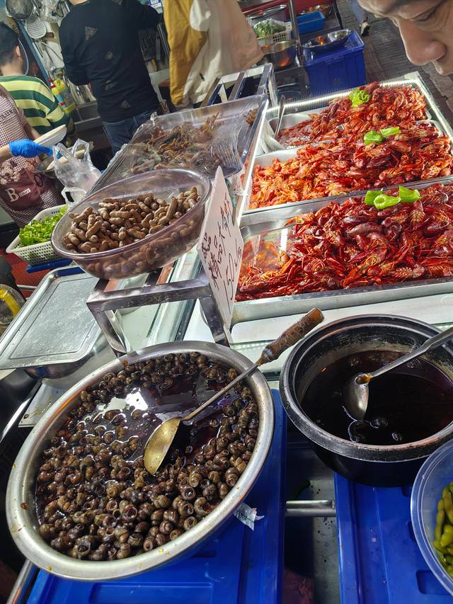 本来网上推荐永安路菜场,但是后来又听说本地人更爱去三茅宫,于是我们就来了。这边看来确实很接地气,即便还没真的到晚饭和宵夜的时间,感觉人气也很旺。