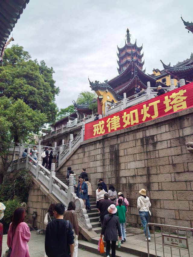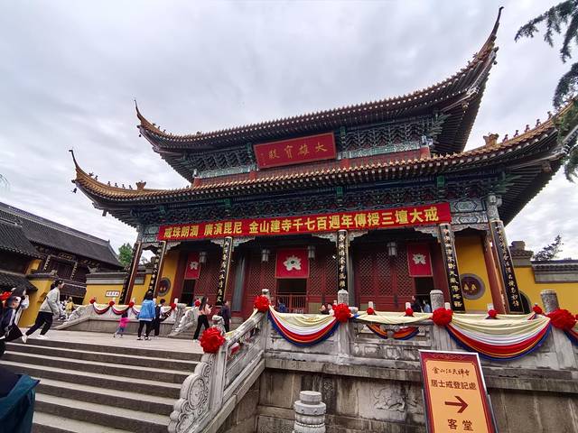 旅游假期到这种热门景点就是要趁早啊,网上说金山寺八点半开门,我们八点打车过去就已经没法到达门口了,还没到八点半,就已经可以进景点了,人流量不算小,不过不用排队等候,丝滑进场,还请了个讲解50分钟100元。