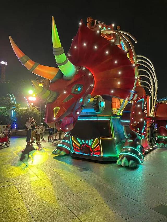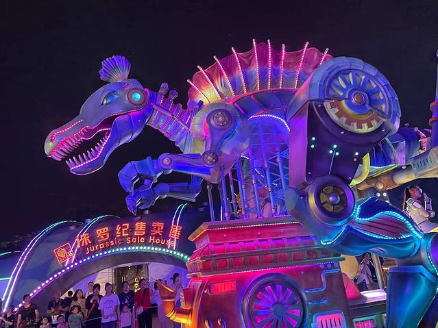 常州恐龙园的亮点在于万众瞩目的夜间灯火秀,其设计超出简单的灯火色彩和布局,以多样的恐龙外形和硬核的装备,展现了恐龙爱好者独有的文化追求,深得大小朋友喜爱。水母、向日葵、七星瓢虫造型的人群队伍也增添多彩,让本不以为然的我对恐龙园的夜间灯火秀场叹为观止。