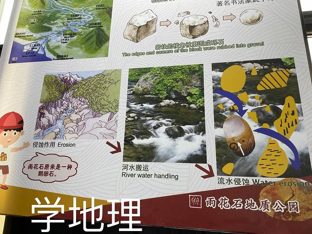 正如上述介绍,雨花石地质公园内可以亲眼见到河流侵蚀地貌遗留下来的地层,和地理课本上的示意图不相上下,眼见为实,大自然的鬼斧神工还是太奇妙了。