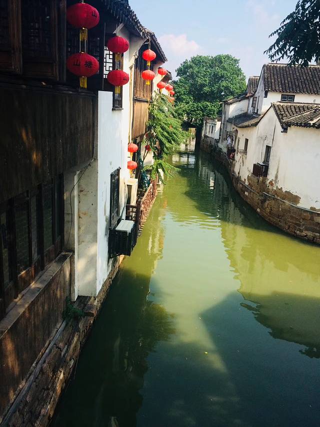 古典风格的名城苏州,这里的绿荫下,没有大都市的喧嚣,没有灰蒙蒙的烟尘,只有小亭和清风。行于街道上,映入眼帘的是一幢幢江南瓦房(真的很喜欢这种城市设计),那黑瓦白墙亦是江南朴素之秀美。没有高楼大厦,一座座朴实的房屋却是很舒心,这便更是使人内心荡漾了。