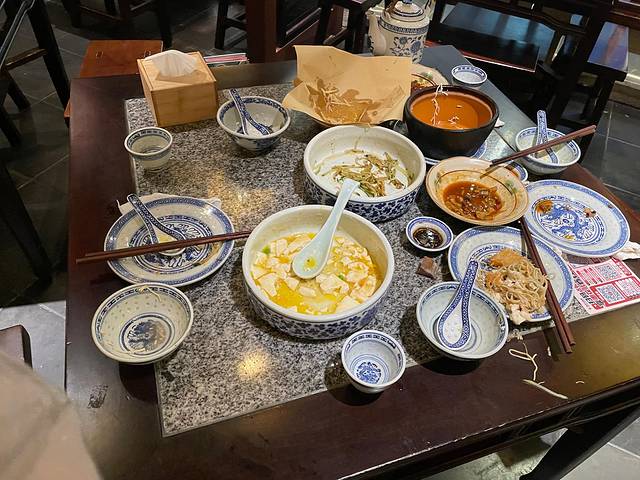 南京大牌档与其说是南京地域特色美食场所,不如说是网红美食名牌打卡地。门店是古风的木饰装潢,有小桥、吊灯、横幅等传统名吃店的必备装潢品。其文创设计融合了传统文化和现代流行语,生动活泼的展现中华传统饮食文化的博大精深,妙趣横生。
