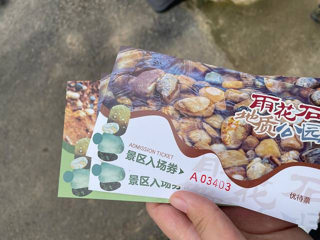 地质公园内有一个很大的铁皮展馆,主要陈列一些成形的有特别颜色或者形状的石头。我们参观到了一些像蛋黄、孔雀、洪荒宇宙等各种内核的神奇石头,还有一些人工制作的巨石雕刻等等,审美价值极高,但都不对外出售。如果碰到了喜欢的,门口有售卖水浸雨花石的小商贩,但是得挑好的、个人喜欢的石头款式才划算,不然还不如去湖里自己捡(景区内的确是可以自己捡到漂亮石头的)。