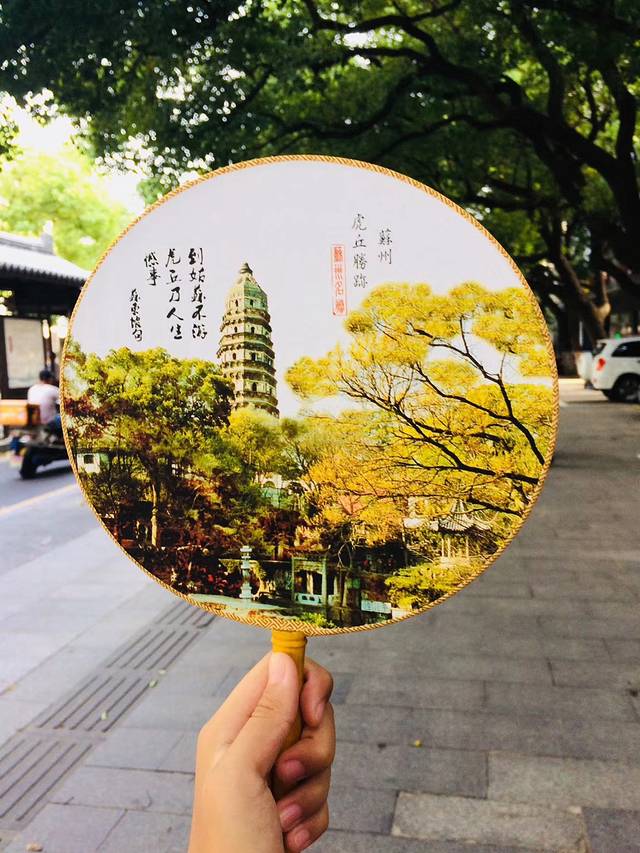 关于苏州地标虎丘塔,错失良机、难以拜访,不过这座遗憾的塔也刻在扇子上面被带回来了。