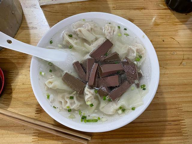 整个南京市随处可见鸭血粉丝店,口味很清淡,不过实在是很可口~加醋才有食效!