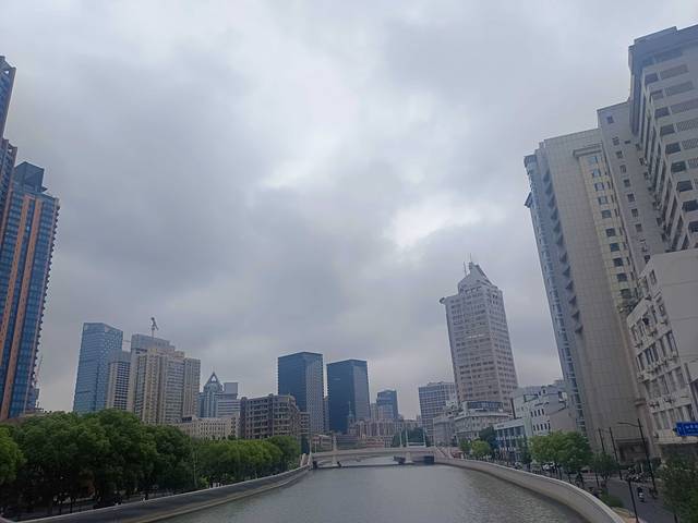 在黄浦江边,然后看到了两岸的高楼,然后这个图片所拍摄下来的景观,我感觉得到就是特别有一种欧式的建筑,然后非常有那种异域风情在里面,虽然天气是阴沉沉的,但是也不妨碍在这条街边散步,感觉交通秩序非常好