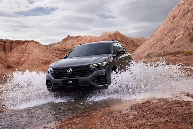 天山神秘大峡谷附近地质复杂,路况很考验车辆和驾驶技术,大众进口汽车途锐的自适应空气悬挂能够提供装载、运动、标准、越野以及特殊越野5种不同的高度调节,就算是需要涉水也不在话下,让人十分安心。