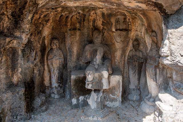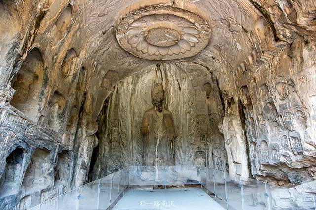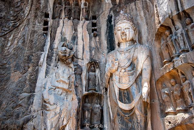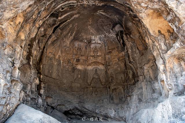 在龙门东、西两个石窟群中,规模最大,造像最多,视觉效果最震撼的是西山石窟,仅北朝和隋唐时期的大、中型洞窟就有50多个,不同时期的石窟风格差异较大,北魏时期的佛像相对清秀,唐代较为圆润,符合当时大众的审美习惯。