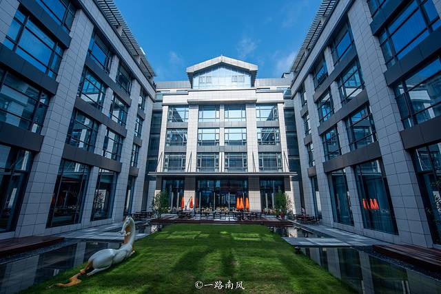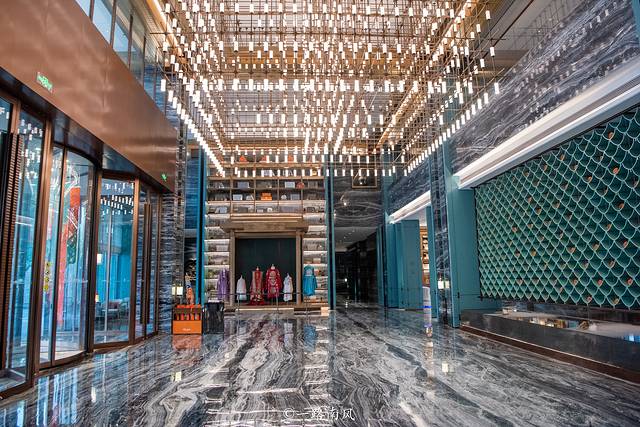 有意思的是酒店内部的设计是隋唐风格,外观却有很多现代元素。