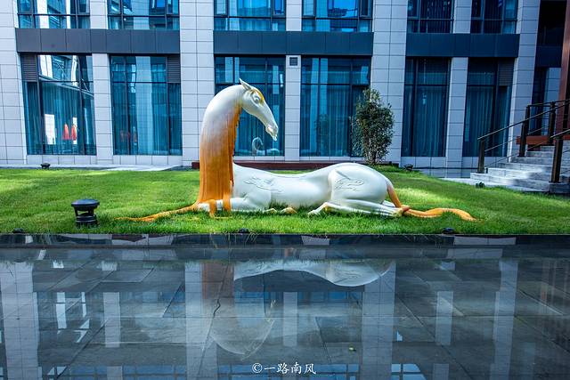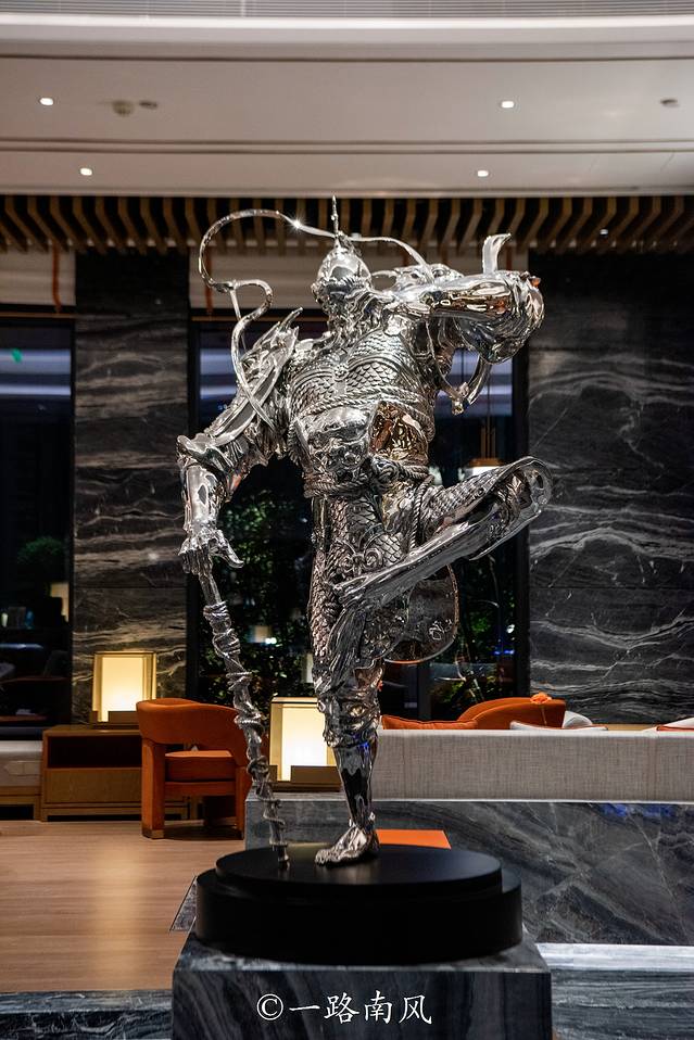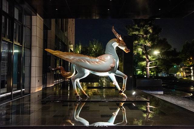 酒店有很多非常有特色的打卡点,比如入口的神兽迎宾、一层中庭草坪的神兽纳福-吉量,大堂的吉灯迎祥和国潮神兽-门神等。这些打卡点都是知名艺术家的“手笔”,将现代美学和洛阳的历史底蕴完美结合。