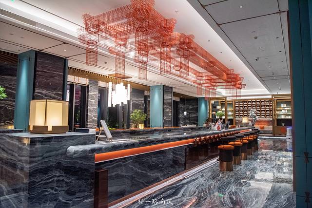非常喜欢轻云·大堂吧,这里延续隋唐盛世的东方美学,据说“轻云”两字取自《洛神赋》。
