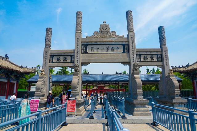 第二天,我们则出发前往洛阳另一个全国重点文物保护单位,也就是有着“中国佛教的发源地”之称的白马寺。刚到寺庙门口,就能看到写有“中国第一古刹”的牌坊,这可不是夸大其词,它是始建于东汉永平十一年(公元68年),是佛教传入中国后兴建的第一座官办寺院,可以说是中国、越南、朝鲜、日本及欧美国家的“释源”和“祖庭”。