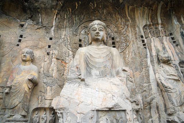 开凿时间长,只是龙门石窟的其中一个特点,更重要的是它是一个全球绝无仅有的皇家石窟,其造像多为皇家贵族所建,比如按照武则天的形象塑造的卢舍那大佛、又或是孝文帝为冯太后开凿的古阳洞、还有李泰为长孙皇后开凿的宾阳南洞等等,历史上的各种人物宛如浓缩在了这个崖壁之上,虽然历经风霜,但是现在依旧留存了洞窟像龛2345个,造像11万余尊,让人叹为观止。