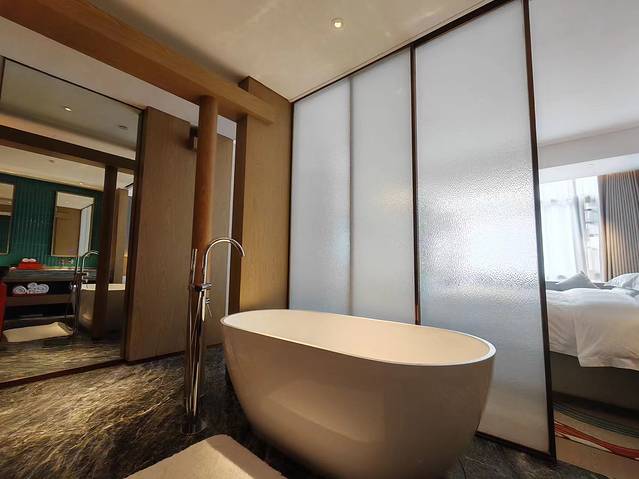 房间:我入住的房间是天梁大床房,房间很大,床很舒服,配有浴缸。