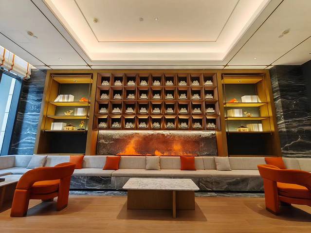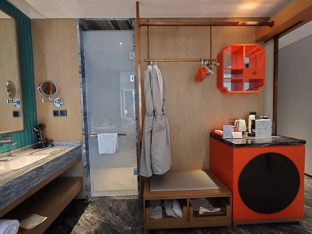 环境:装修充满东方美学色彩。一层有很大的共享空间,还配有西餐厅、茶室、健身房等。