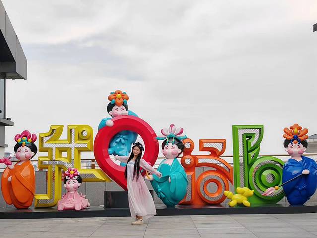从龙门石窟出来,回到酒店休息,然后步行到大河荟游玩吃饭,这是个亦古亦今、好玩又好拍的商业综合体,四层还有洛阳非遗美食街。