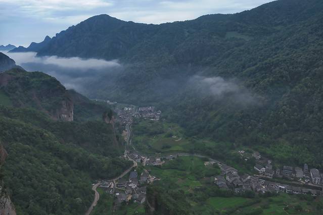 方洞:方洞悬崖峭壁之间开凿的一条栈道,是雁荡山金带嶂半山腰上的一条金色腰带,进入景区便进入了栈道,栈道蜿蜒曲折一路延伸,正赶上雁荡山雨后云海,一侧的山峦、栈道、农田、乡村一下子进入到仙境模式,看到如此梦幻的景色,真的有点舍不得离开的情绪呢。栈道一侧有一个洞穴咖啡,可以落脚休息拍美照哦。