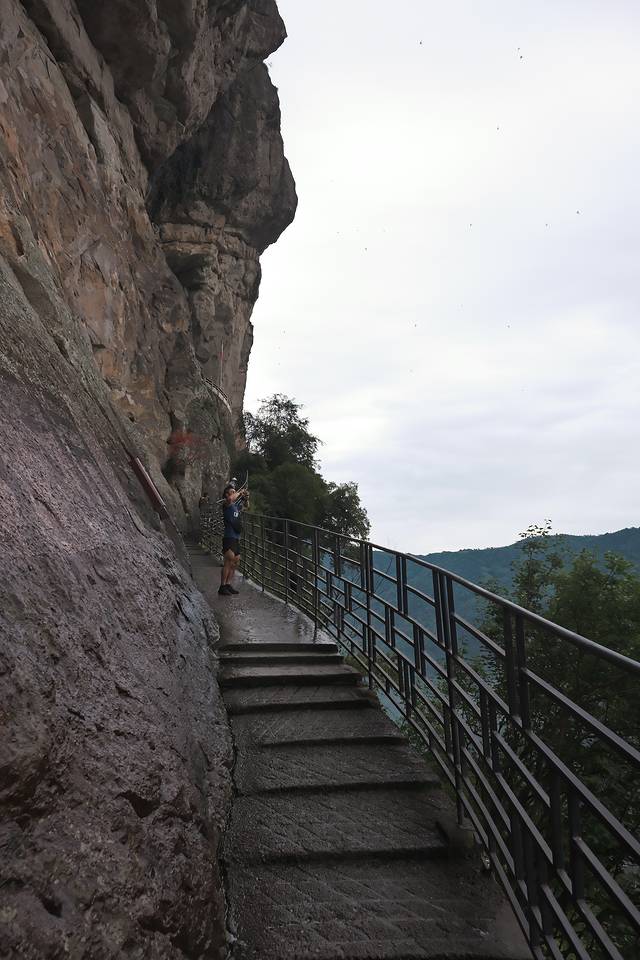 卧云栈道:架在方洞和灵岩两个景区之间的一条半山栈道,总长有1.3公里呢,一改雁荡山传统的谷底看峰模式,远远看去,卧云栈道漂浮在云海之中,眼前是云雾缭绕,而脚下便是千丈绝壁,这是你想要的仙界吗?