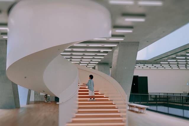 M+其建筑本身就像是一个艺术品,线条和空间的变化,勾勒出了艺术的氛围,窗外得天独厚的海景,让人忍不住停下脚步欣赏。