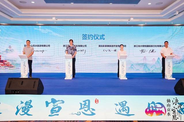 推介会上,宣恩文旅通过情景推介方式,向杭州市民和旅行商展现了中国民间文化艺术之乡、中国天然氧吧、湖北省旅游强县的厚重民族文化和秀丽的山水风光。通过两地积极沟通,西湖区和宣恩县两地工会将积极组织动员更多的劳模、职工开展疗休养活动,将宣恩打造成疗休养的重要目的地。两地旅游企业达成合作共识,推介会上,两地4家涉旅企业成功签约,为进一步推动杭恩两地文旅协作注入了新动能。