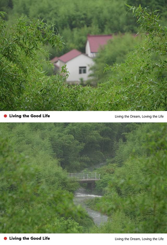 后山有一个观景眺望台,可以远观壮阔的山景和山谷里小村庄的炊烟,小桥流水人家,像是进入了世外桃源。